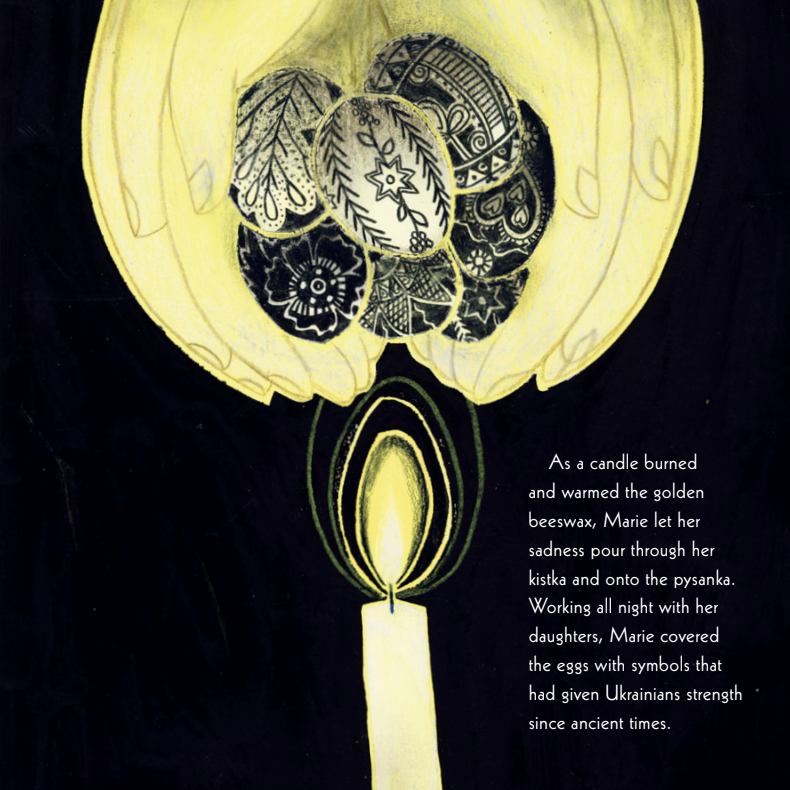 There was a lot to be excited about! The eggs themselves are so beautiful, and I instantly saw how they could translate into very exciting illustrations to tell Marie’s story. I love learning about history, artists, and cultural traditions, so it was really the perfect intersection.